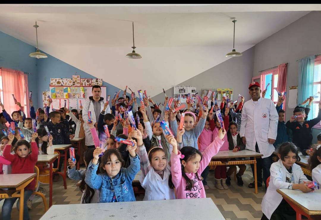 dans le cadre de la célébration de la WOHD, la section AMPBD Taza a organisé une journée de sensibilisation à la santé bucco-dentaire au profit de 812 élèves du groupe scolaire bni Frassen région de Taza.
