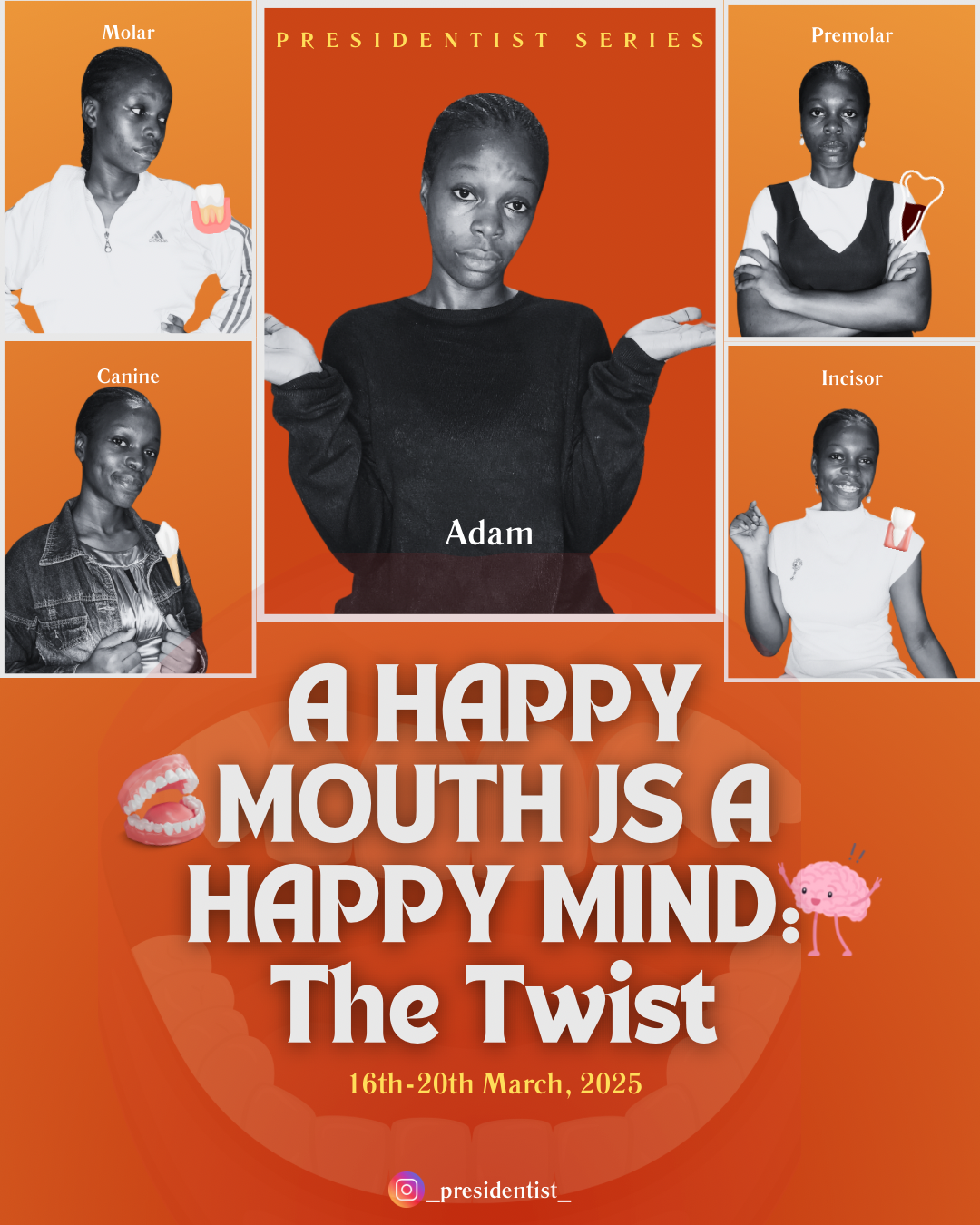 This submission is a creative short-form video series aimed at promoting oral health awareness in a fun, engaging, and relatable way. Using personified teeth characters, the series highlights the impact of poor oral hygiene on mental well-being, aligning with the theme of World Oral Health Day.