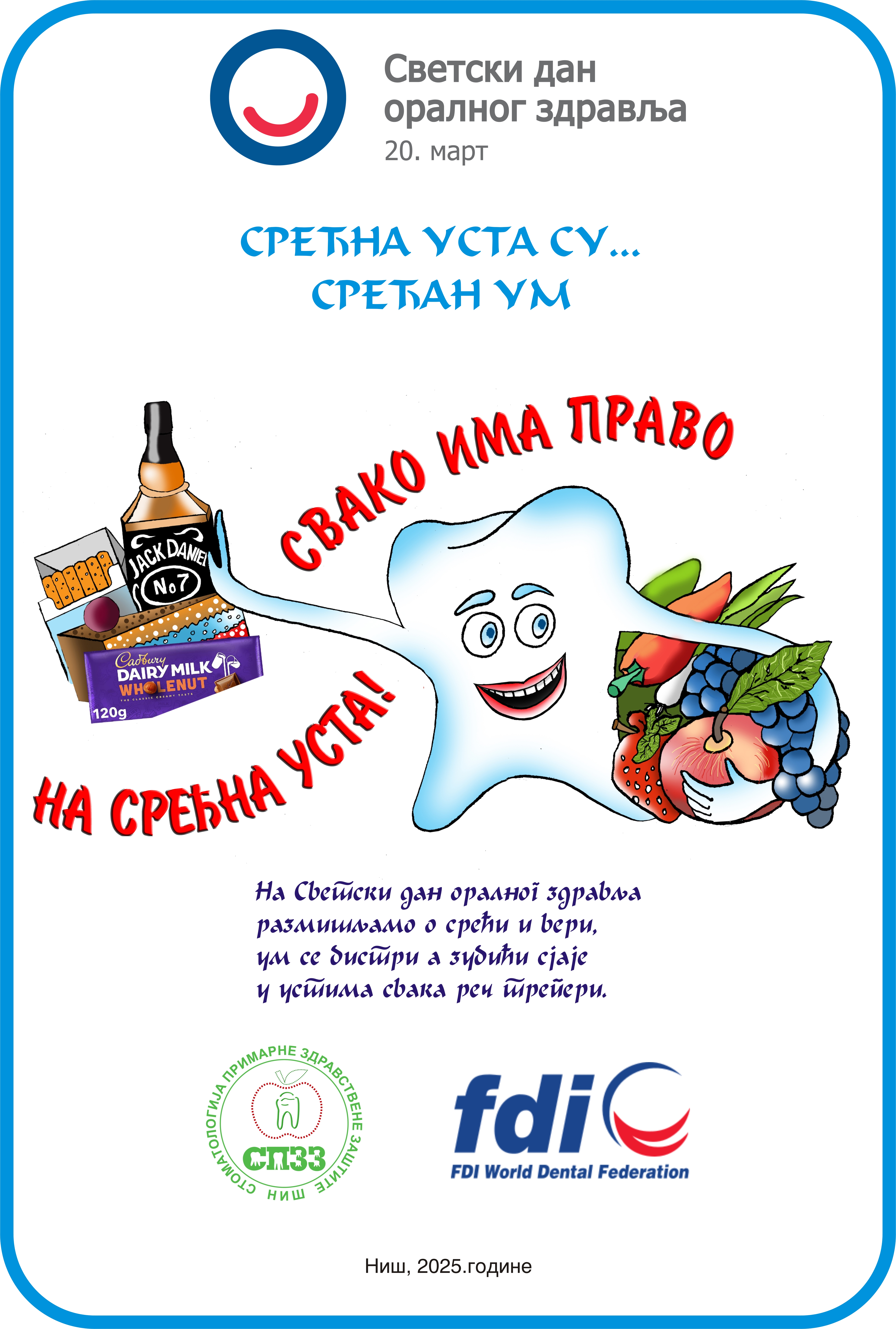 Based on the program of the associations Dentistry of Primary Health Care and Women Dentists of Serbia, the latest, 2025 WOHD campaign under the slogan A Happy Mouth is...a Happy Mind has been continuously implemented since October 2024 in: