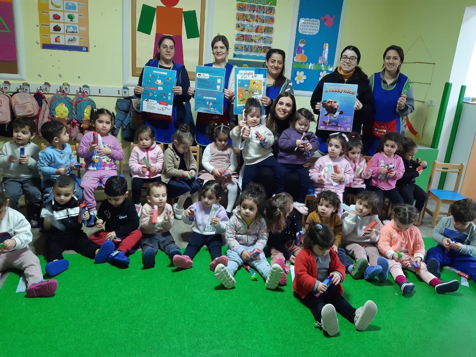 The kindergarten À la queue leu leu and Collège Sainte Famille Fanar participated in the WOHD. Dr. Pamela Kassabian led oral health motivation sessions, teaching proper brushing techniques and healthy eating habits. Toothbrushes and toothpaste were then distributed.