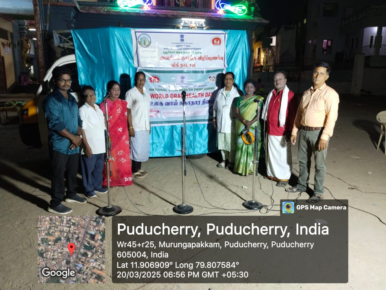 One of the highlights of this initiative was the use of “Theru Koothu”, a vibrant and deeply rooted Tamil street theatre tradition. Known for its expressive storytelling, colourful costumes, and engaging dialogues, Theru Koothu has long been a medium for social change. By incorporating oral health themes into this art form, we delivered impactful messages on the importance of brushing twice a day, avoiding tobacco, and seeking timely dental care—all in a way that resonated with the audience. Dental surgeons and oral health staff participated in these events making their contribution in spreading the message of oral health in the streets of Puducherry.