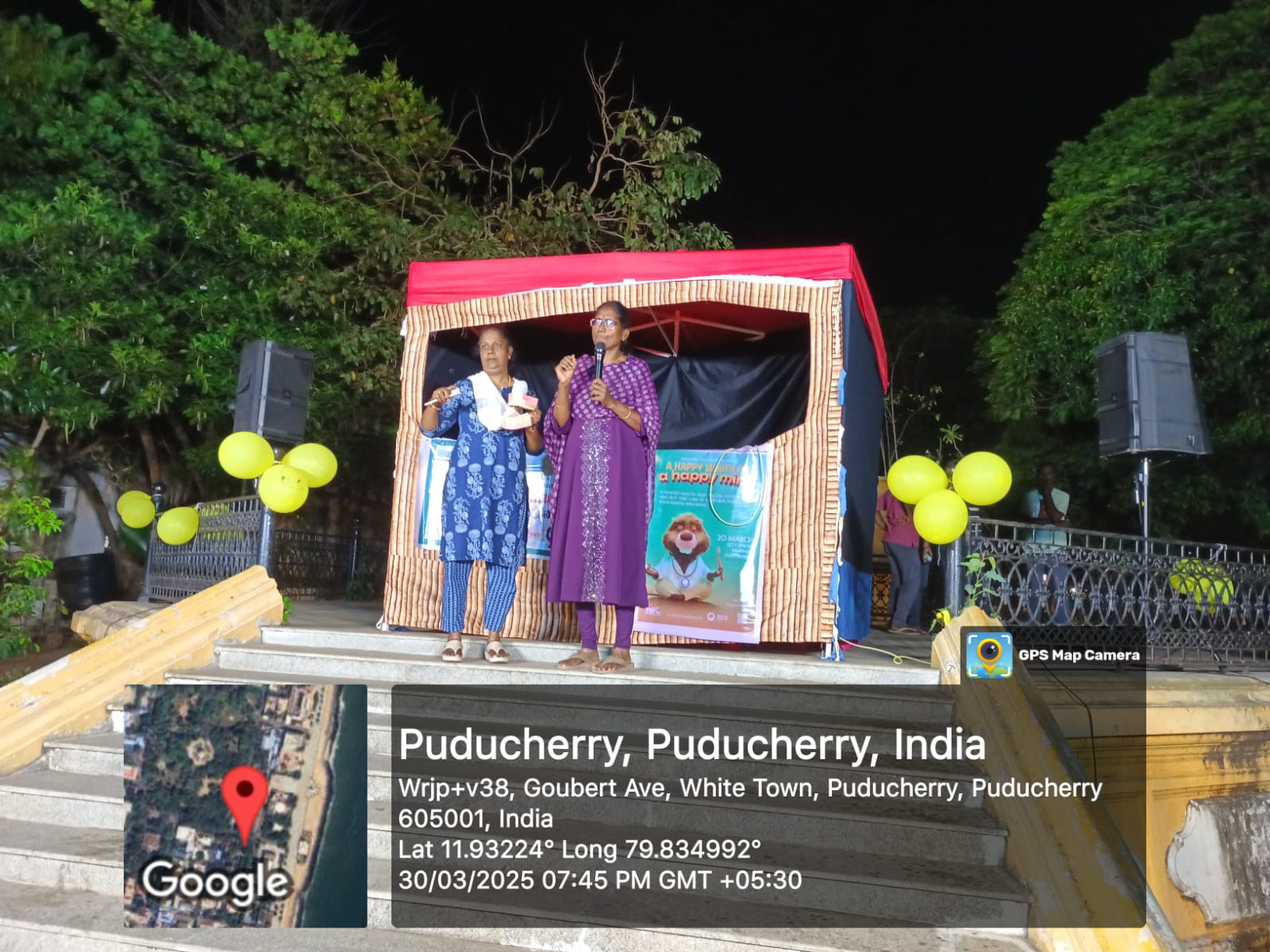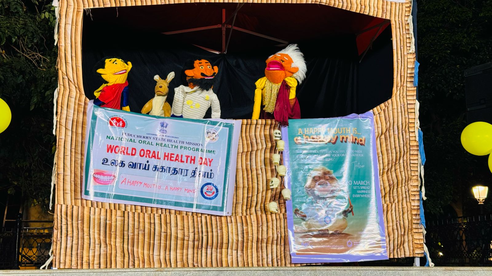 As a part of the world oral health day campaign the National Oral health Programme Puducherry organised a puppet show at the beach near Gandhi Thidal. This was a creative and engaging way to spread awareness about oral health and hygiene.