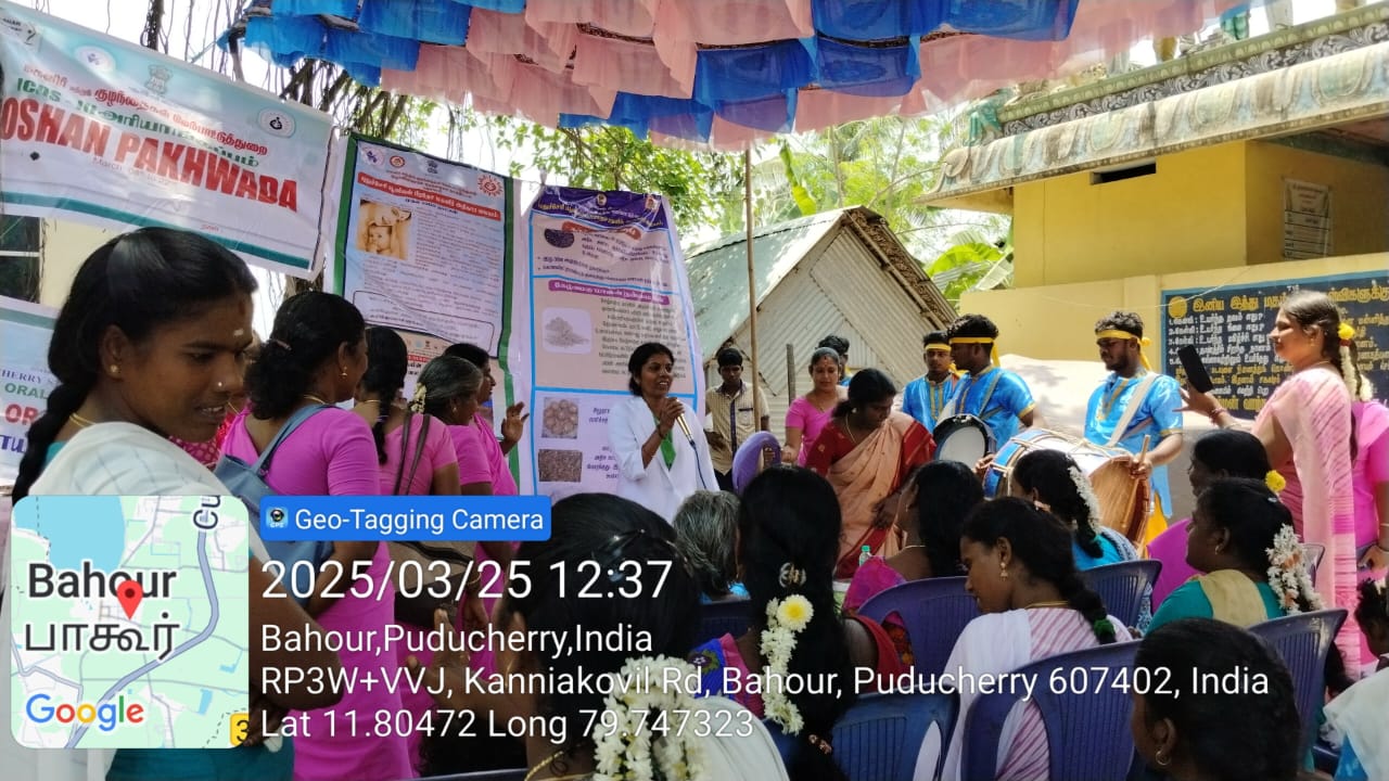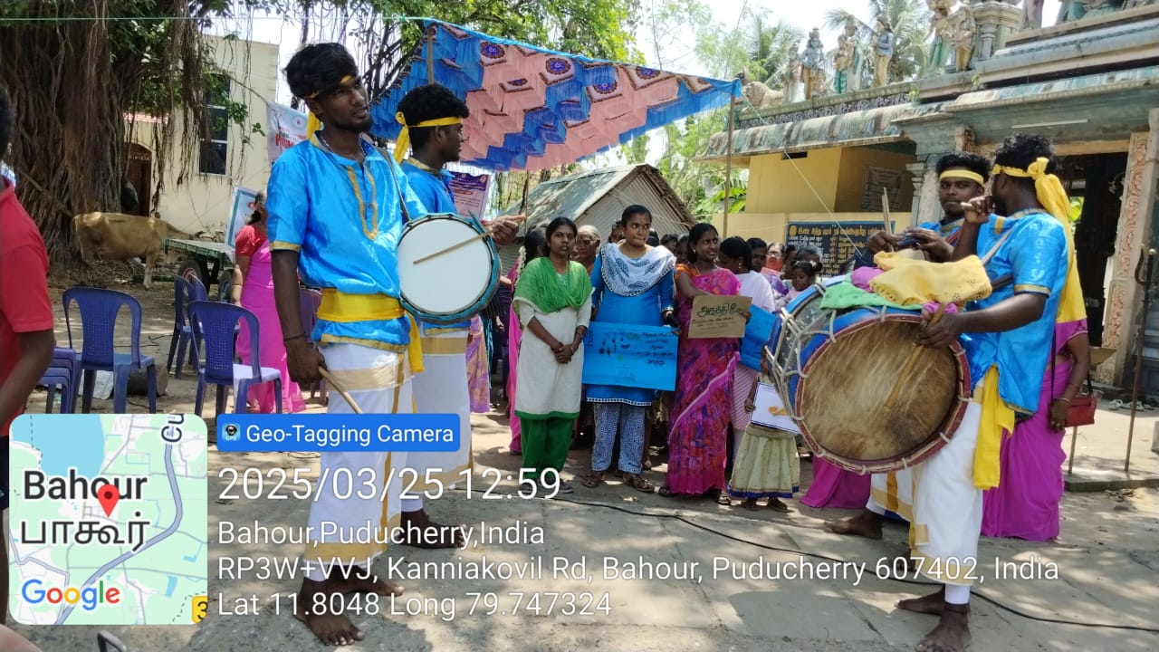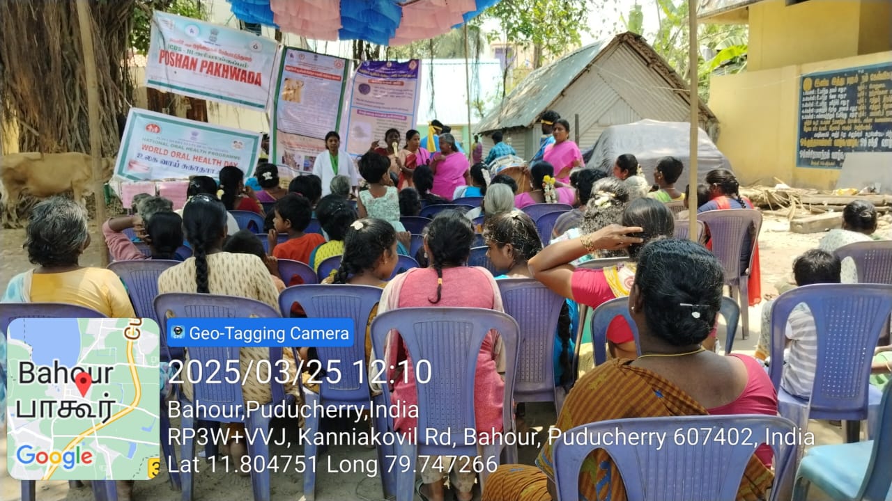 Bahour witnessed a successful celebration of World Oral Health Day on 25th March 2025 at Muthumariamman Koil. The event was organized by the Bahour Anganwadi workers and saw the participation of nearly 50 beneficiaries.