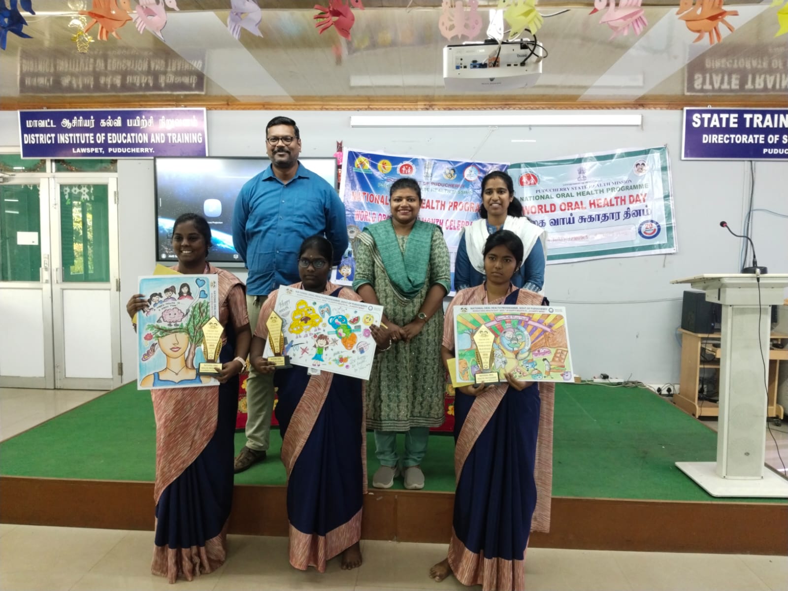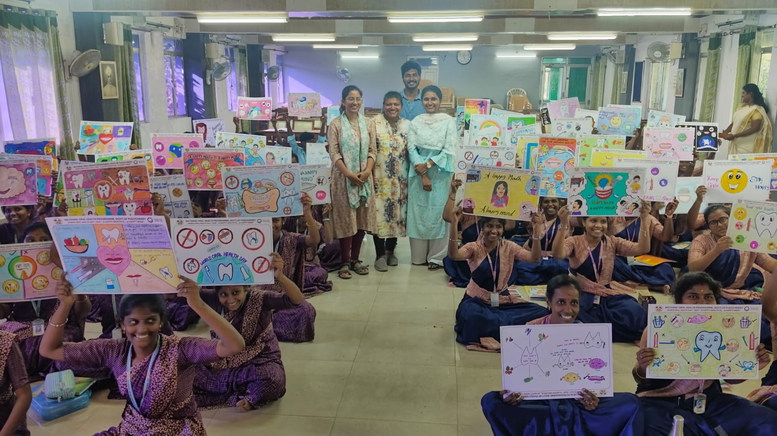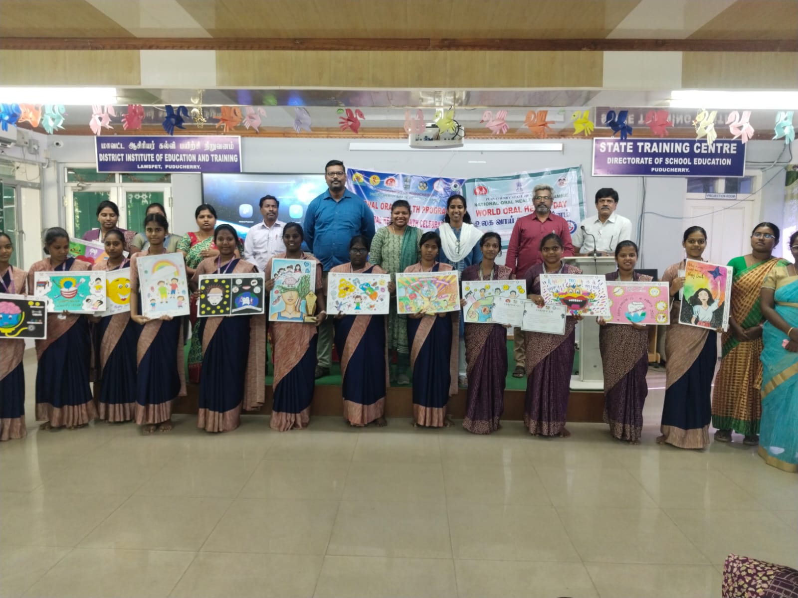 In addition to the competition, oral health awareness talk was given to the students, As a part of WOHD celebration, a drawing competition was conducted to the teacher training students of DIET Lawspet on the topic “A Happy Mount is a Happy Mind “.