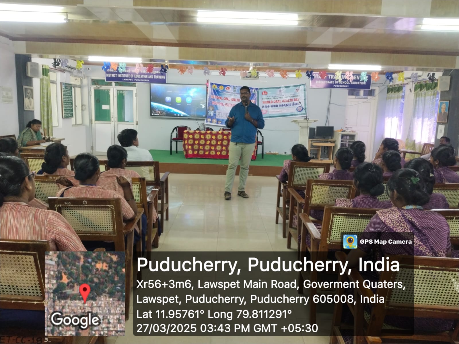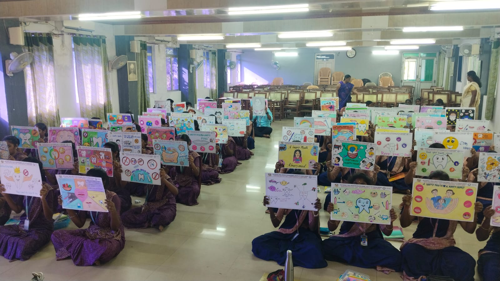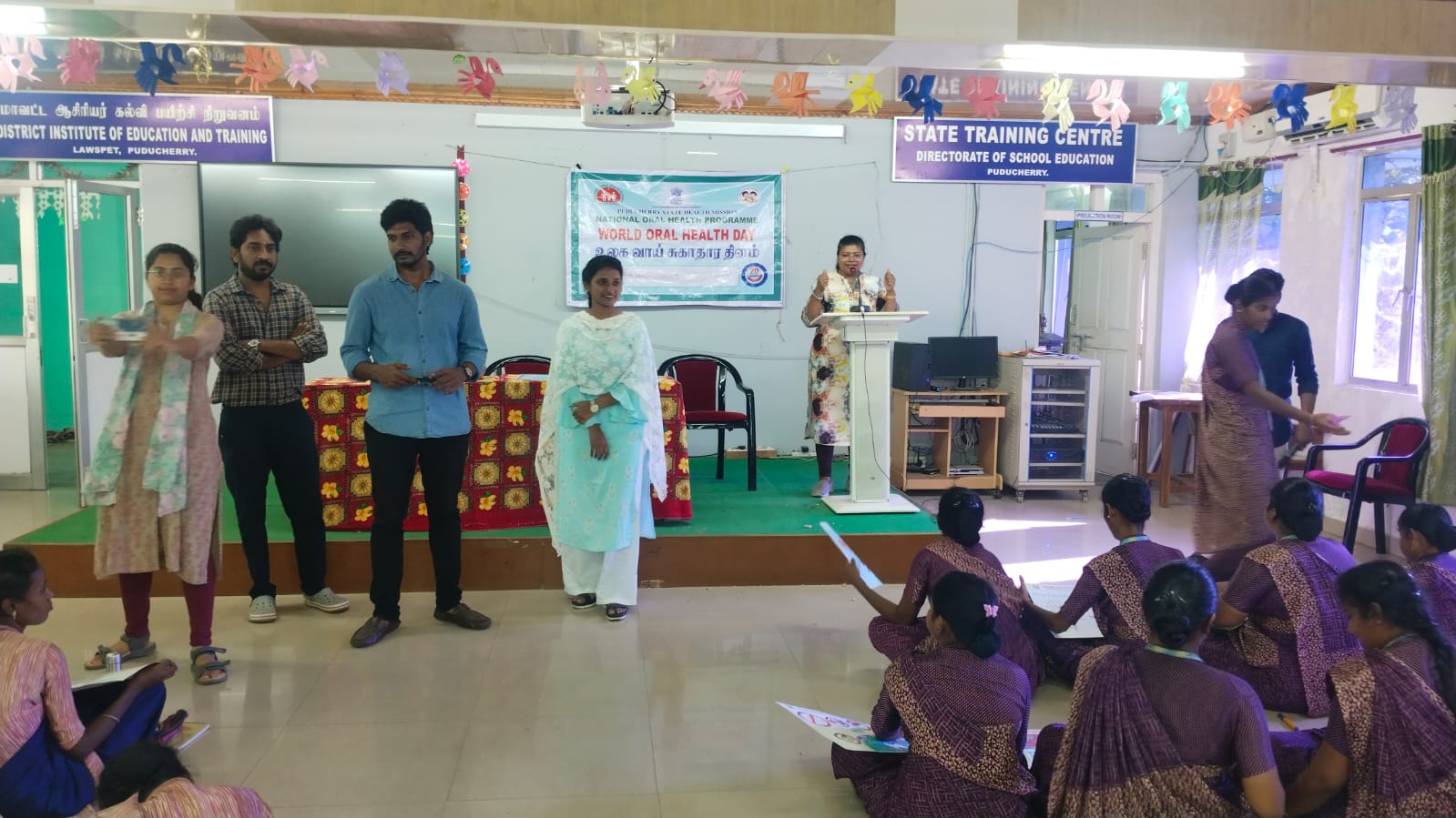 In addition to the competition, oral health awareness talk was given to the students, As a part of WOHD celebration, a drawing competition was conducted to the teacher training students of DIET Lawspet on the topic “A Happy Mount is a Happy Mind “.