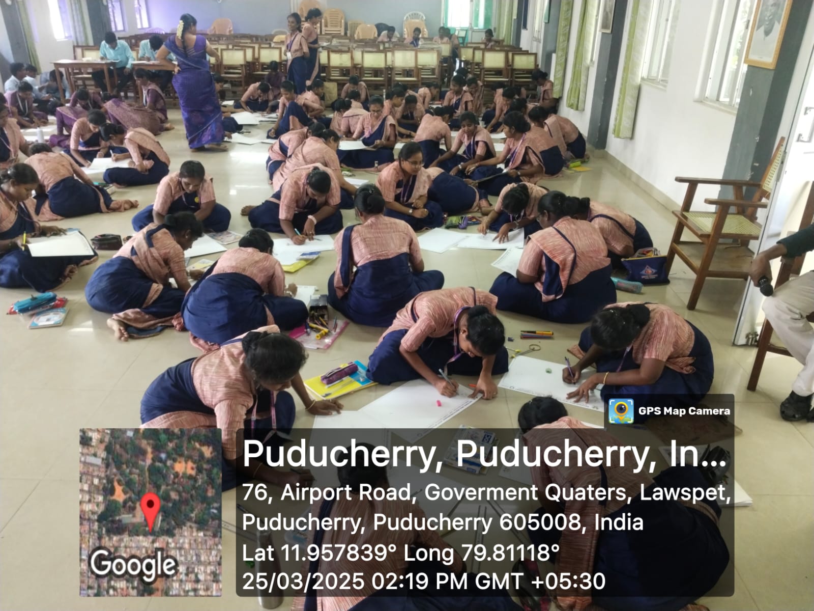The students showed active participation in the competition exhibiting their drawing talents.