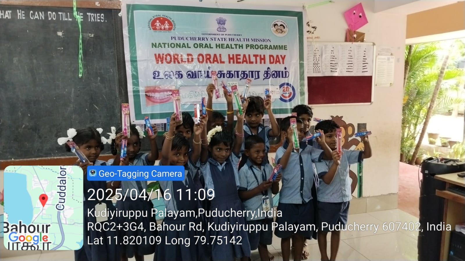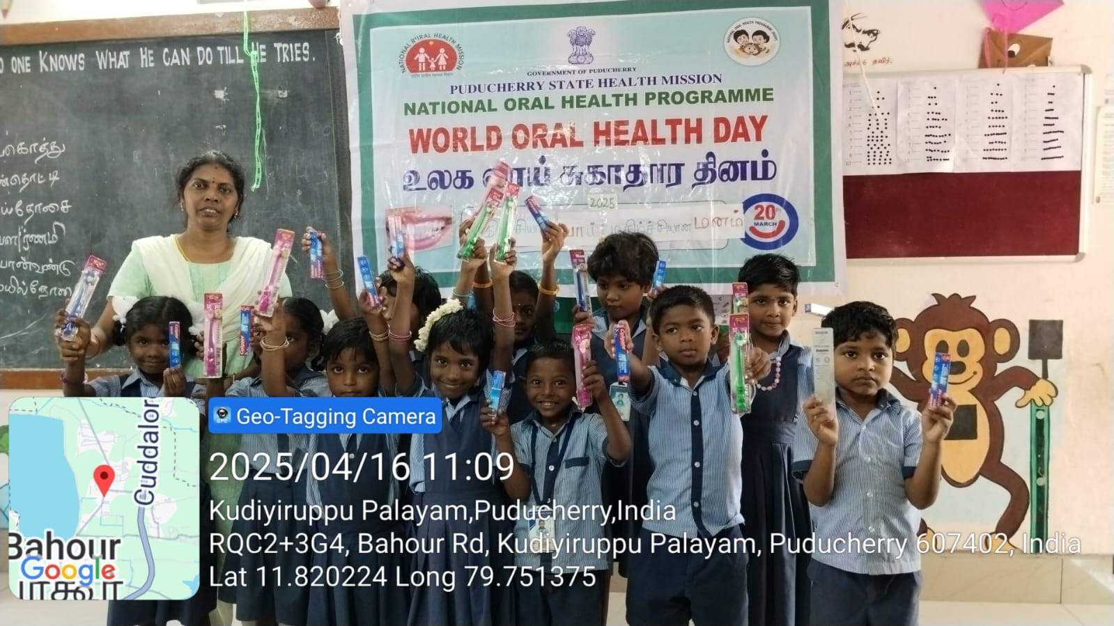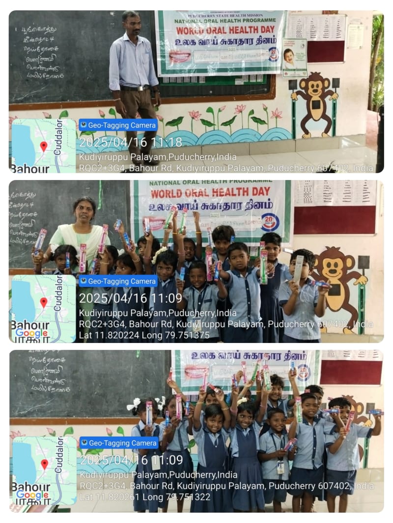 NOHP Puducherry - Mass tooth brushing program at Government primary school