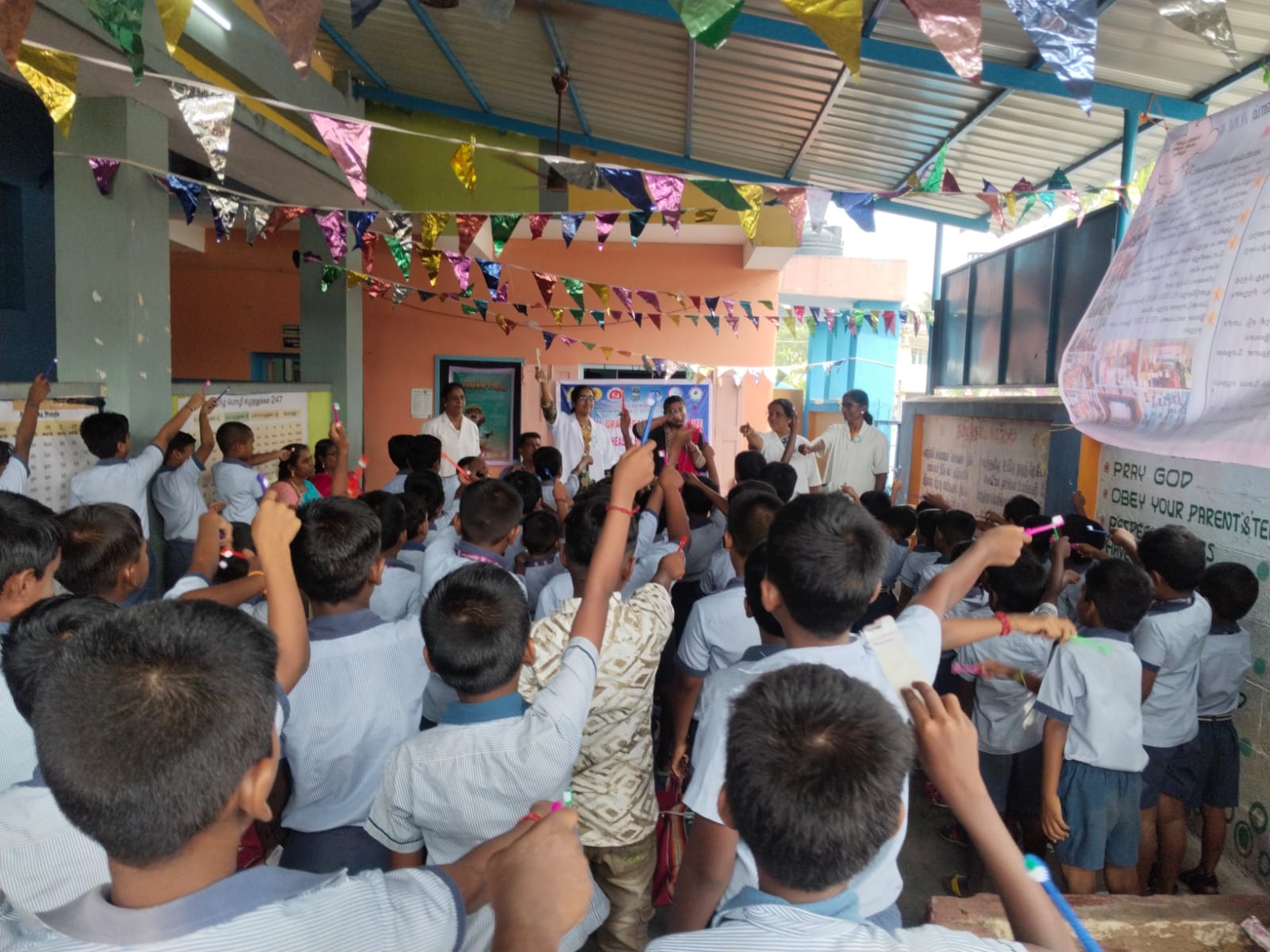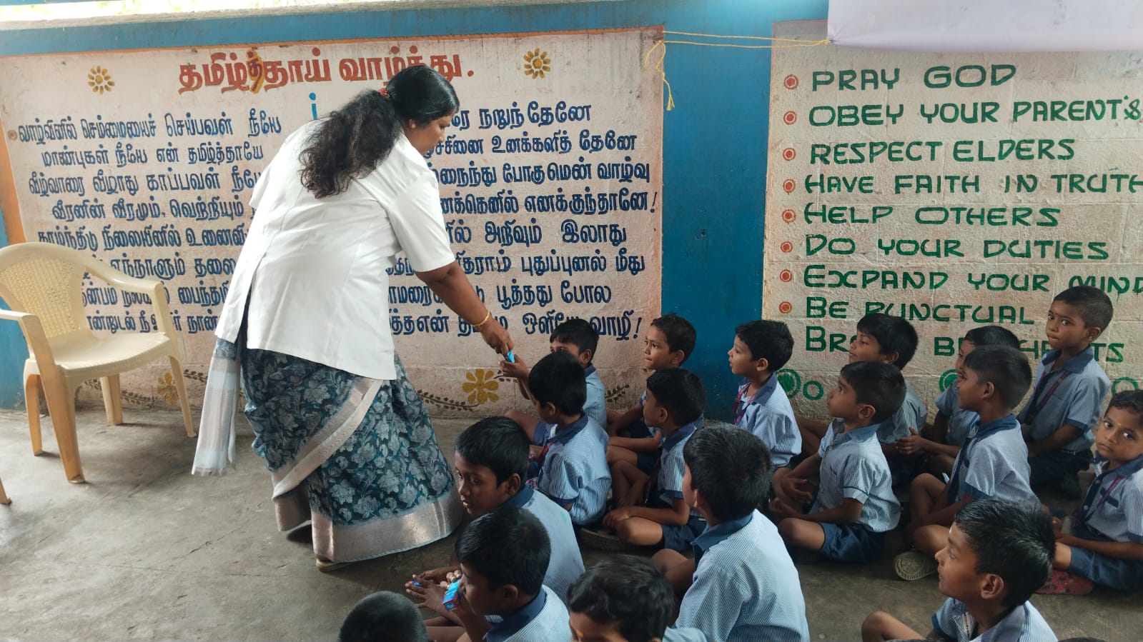 The program involved over 165 students, aged 3 to 10 years, who participated in a guided tooth brushing session. Dr. Kavipriya SNO NOHP, Dr. Suganthi, Dental surgeon NOHP from the mobile unit and its team demonstrated proper brushing techniques, stressing the need to brush twice daily with fluoride toothpaste for two minutes. Each child received a toothbrush, toothpaste, and an age-appropriate oral health guide. Interactive elements like demonstrations and a group brushing pledge ensured engagement and reinforced learning.