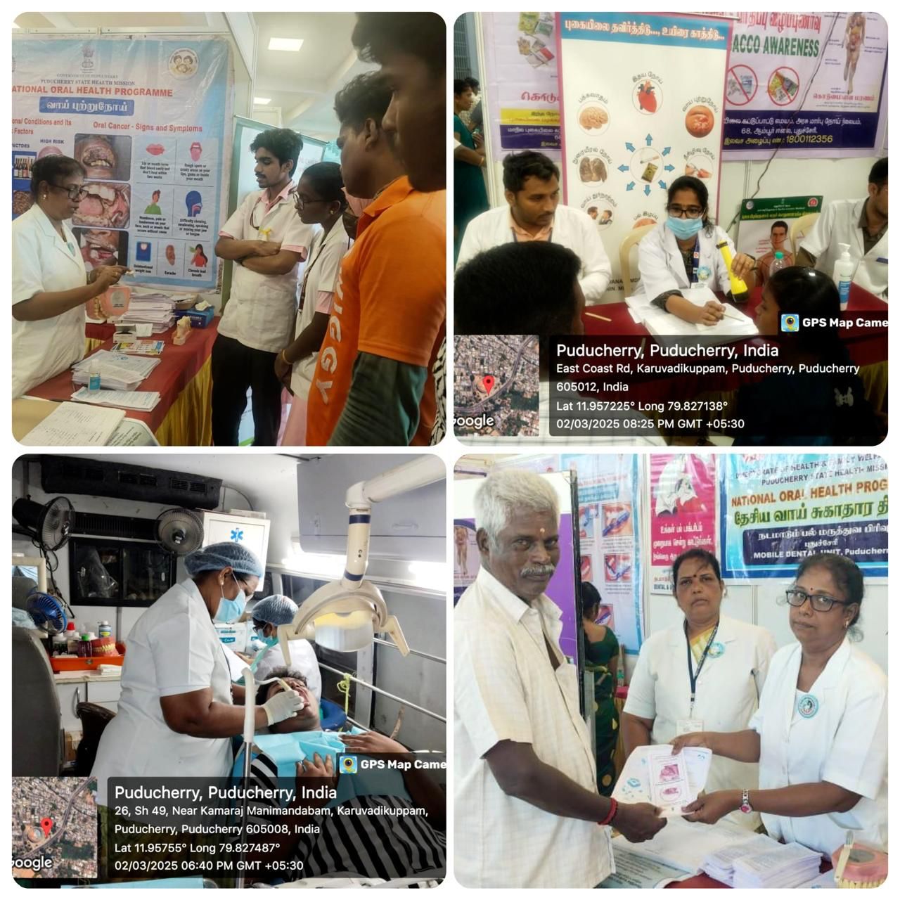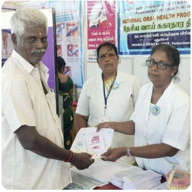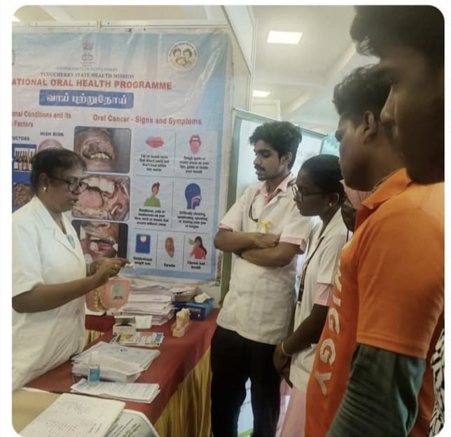 The health department government of Puducherry organised a mega health mela where stalls on the different specialities of medicine and all the programs of the national health mission put up awareness stalls for the benefit of the community. The National oral Health program, Puducherry in collaboration with Mahatma Gandhi Post graduate Institute of Dental Sciences participated in this health mela and conducted awareness sessions, dental screening and treatments with the help of Mobile dental vans. This awareness and treatment camp was conducted for 3 days at Kamarajar mani mandabam a public exhibition venue in Puducherry.