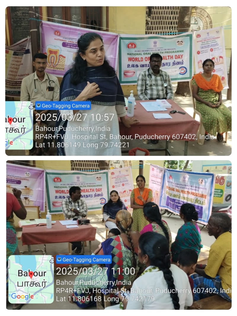 The Primary Health Centre (PHC) in Bahour celebrated World Oral Health Day on 27th March 2025 with an awareness and screening camp. The event featured expert opinions who highlighted the importance of maintaining good oral hygiene and provided valuable insights on oral health care.