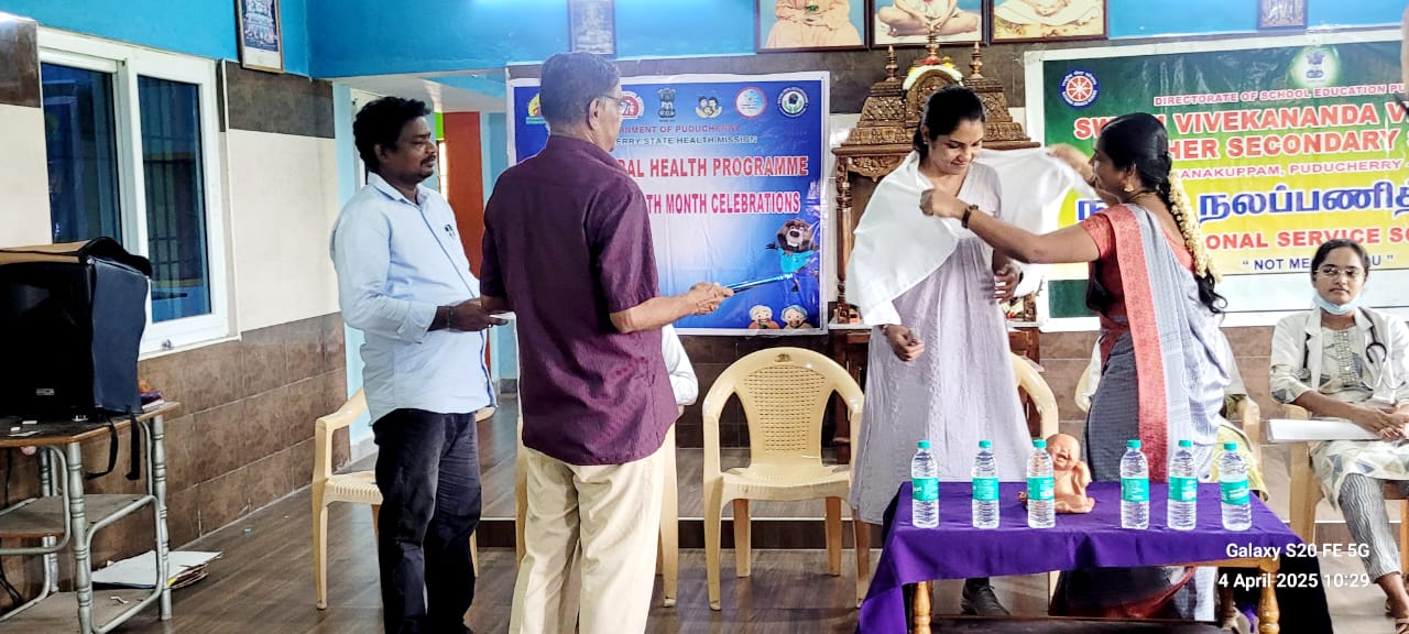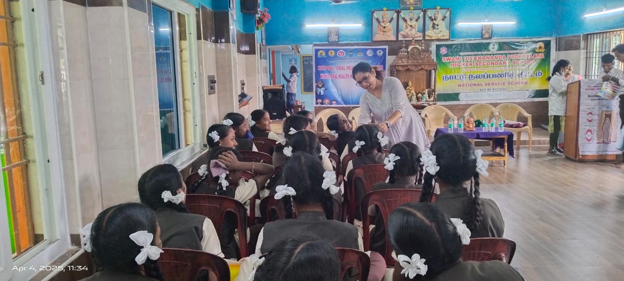 An awareness session on oral health and hygiene and the ill effects of tobacco and other substance abuse was conducted for 48 NSS students of Vivekananda HSS. The event aimed to educate young minds on the importance of maintaining good oral hygiene and making informed lifestyle choices.