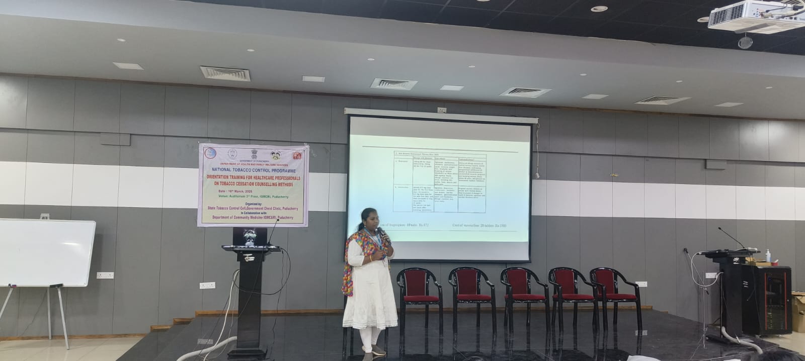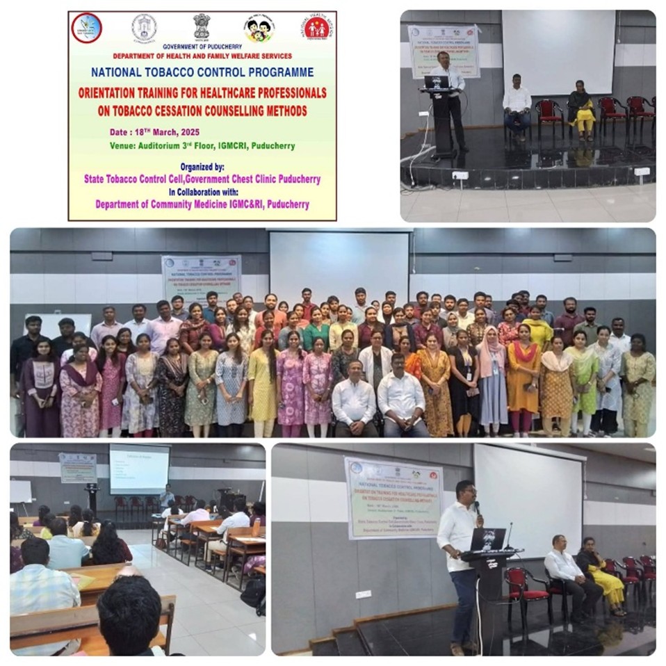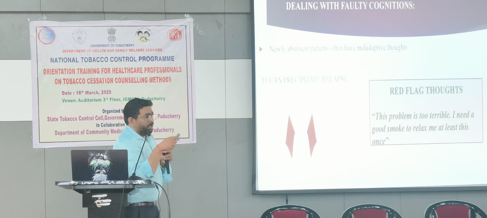 Trained professionals can recognize tobacco users early, assess their dependence, and provide timely interventions to prevent long-term health complications. Around 92 health care professionals working in the area of tobacco cessation were trained at IGMCRI, Kathirkamam on techniques like Motivational Interviewing (MI) and Cognitive Behavioral Therapy (CBT) which help in addressing addiction, reinforcing self-motivation, and preventing relapse. This training helps healthcare providers offer a combination of counseling and medications like nicotine replacement therapy (NRT) and bupropion, improving quit rates. The workshop was given a positive feedback reinforcing the success of conducting such workshops.