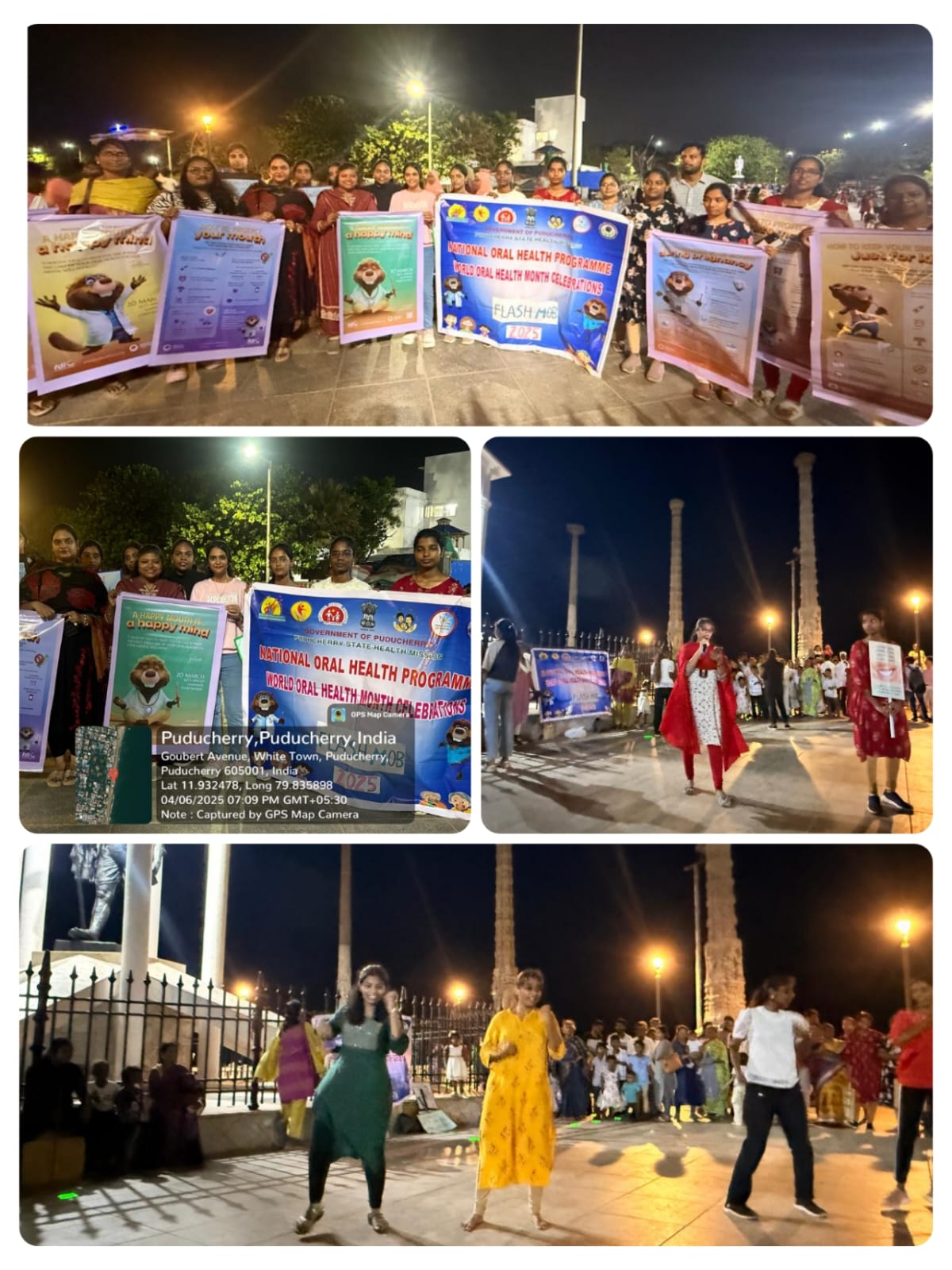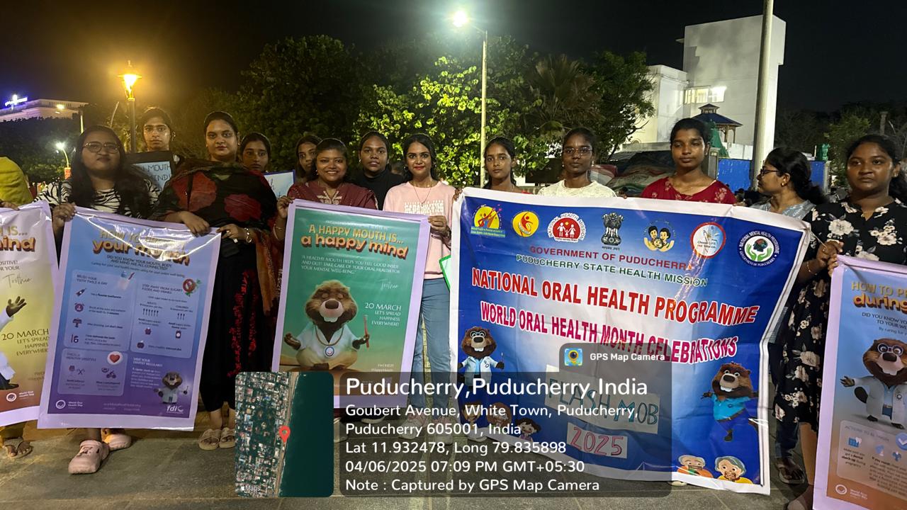 On the evening of April 6, 2025, the vibrant Promenade Beach Road in Puducherry came alive with a spirited flashmob organized by the Indira Gandhi Institute of Dental Sciences (IGIDS) as part of the World Oral Health Day month celebrations. This lively event, orchestrated under the banner of the National Oral Health Programme, Puducherry, was a creative initiative to raise awareness about oral health in an engaging and accessible way. With the golden sands and the rhythmic waves of the Bay of Bengal as a backdrop, the flashmob captured the attention of locals, tourists, and passersby, turning a routine evening into a memorable moment of community connection.