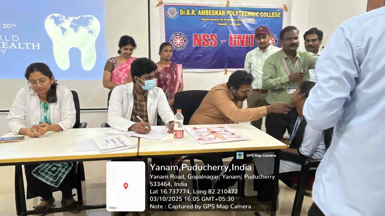 On the occasion of World Oral Health Day (10th March 2025), an Oral Health Education Camp was successfully at Dr. B.R. Ambedkar Polytechnic College, Yanam.
