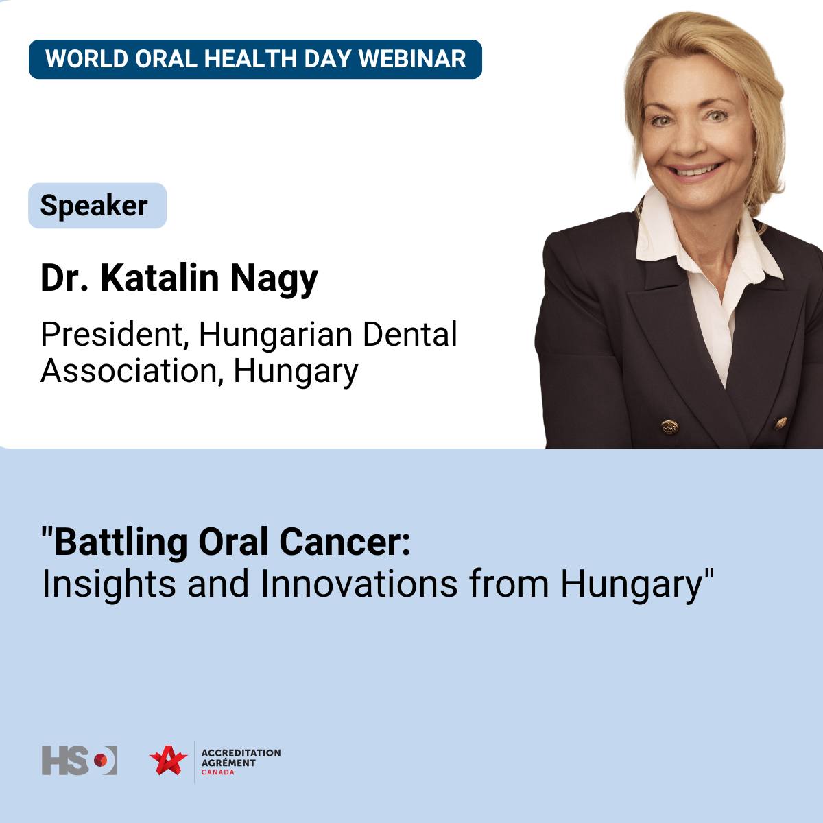 Prof. Dr. Katalin Nagy, President of MFE, will give a lecture titled Battling oral cancer: insights and innovations from Hungary, on March 20, 2025, in honor of World Oral Health Day.