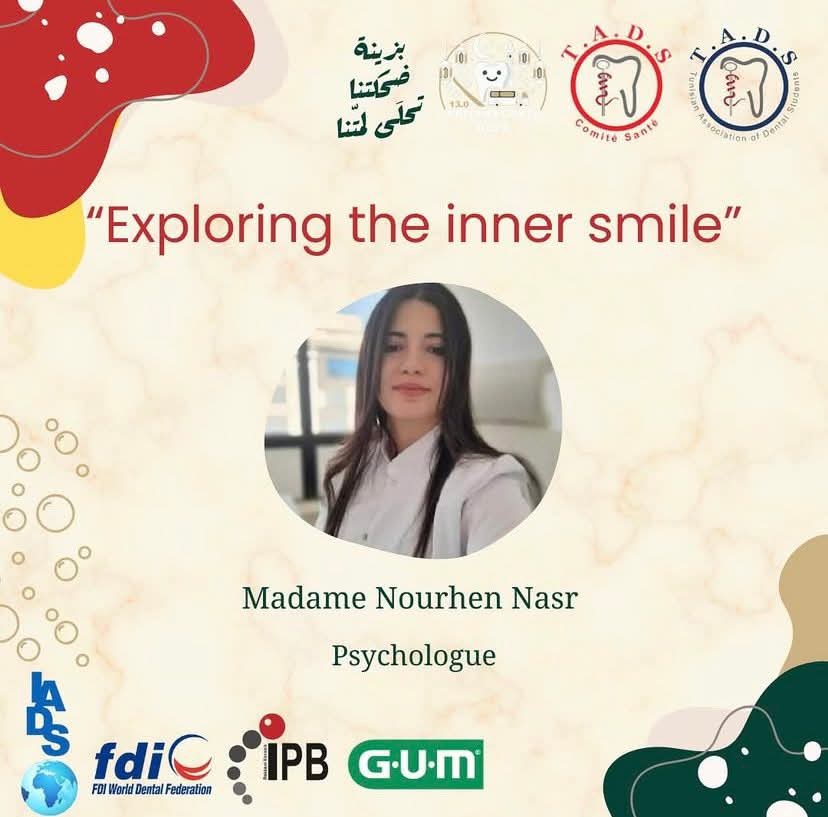 Presented by psychologist Nourhen Naser, this session highlighted the strong connection between mental health and oral health. The discussion also covered practical approaches to handling children who fear the dentist, as well as adaptation strategies for dealing with different backgrounds and situations during school visits.