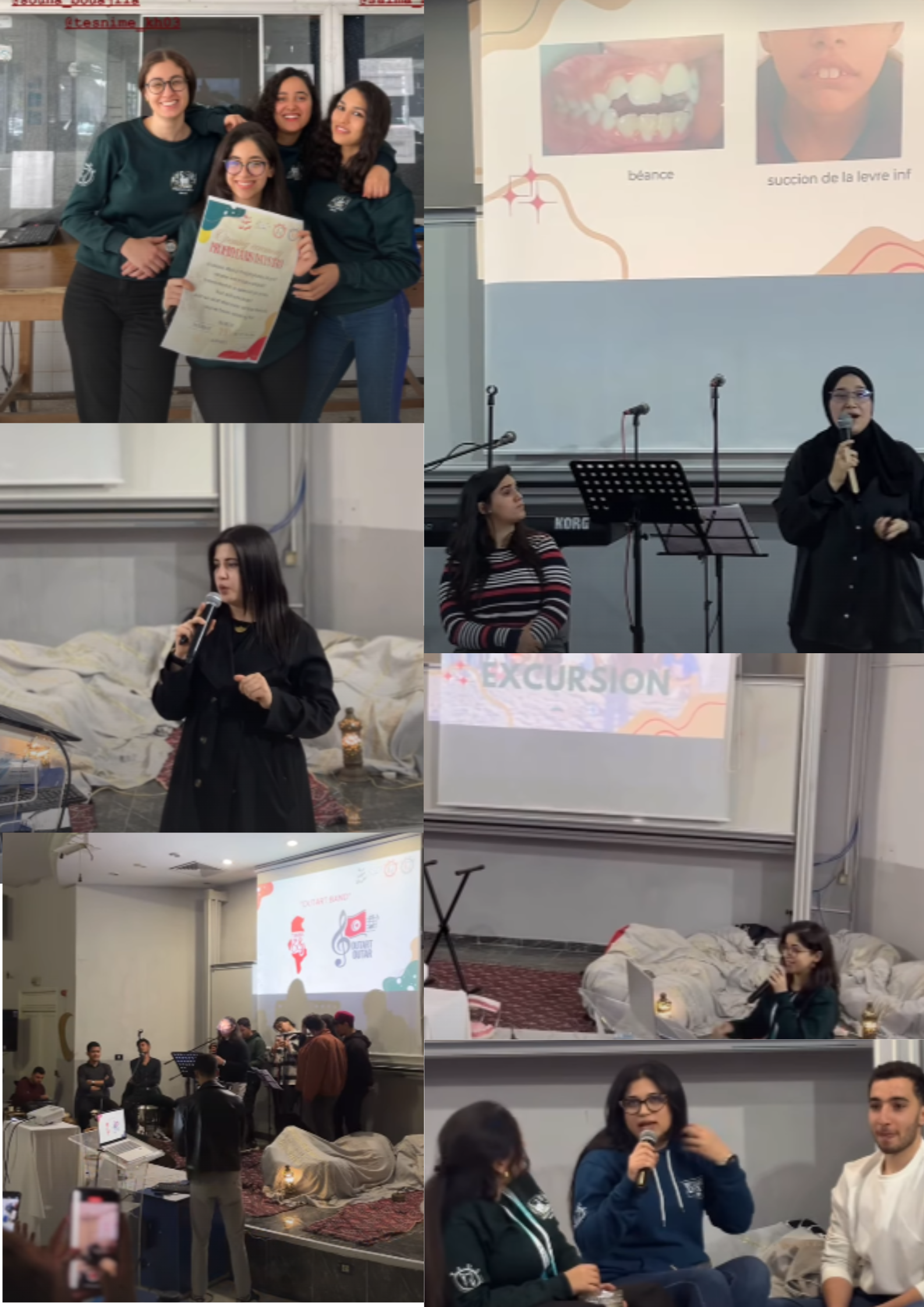One of the highlights of the ceremony was an educational simulation led by our esteemed professors, Dr. Chatti Marwa (Assistant in Pedodontics) and Dr. Hamzaoui Cyrine (Resident in Pedodontics). They presented realistic cases that we might encounter during our future visits to primary schools, demonstrating how to handle children, give them oral hygiene advice, and emphasize the importance of oral health for mental well-being, especially in children during their developmental stages. This was followed by a practical demonstration on how to examine the oral cavity (both intraoral and extraoral examinations)—a highly enriching session for dental students.