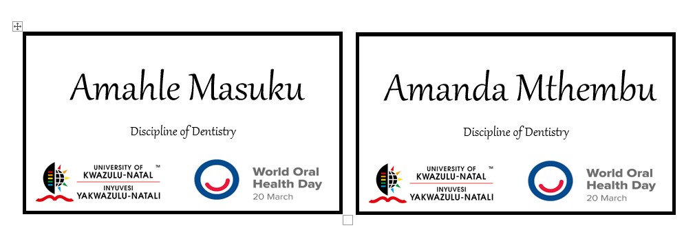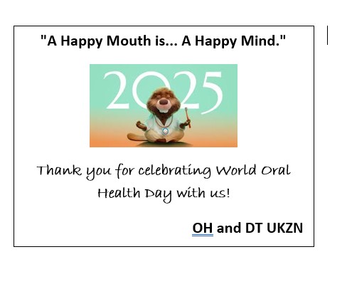 The event was published in the University newsletter: https://ndabaonline.ukzn.ac.za/UkzndabaStory/Vol13-Issue04/UKZN%20Celebrates%20World%20Oral%20Health%20Day/