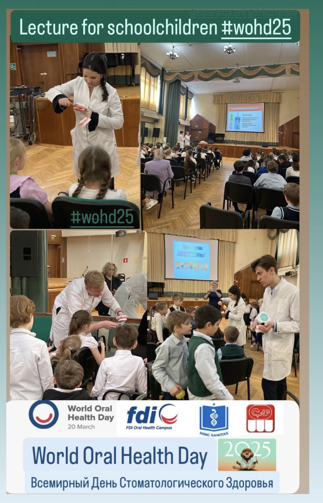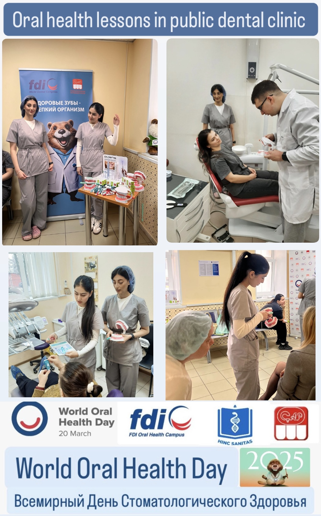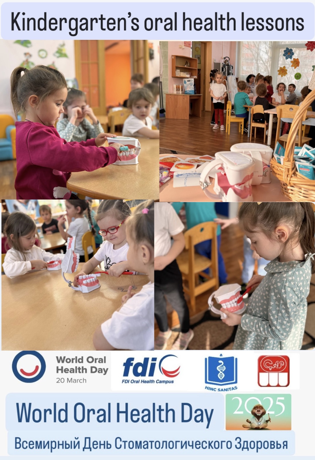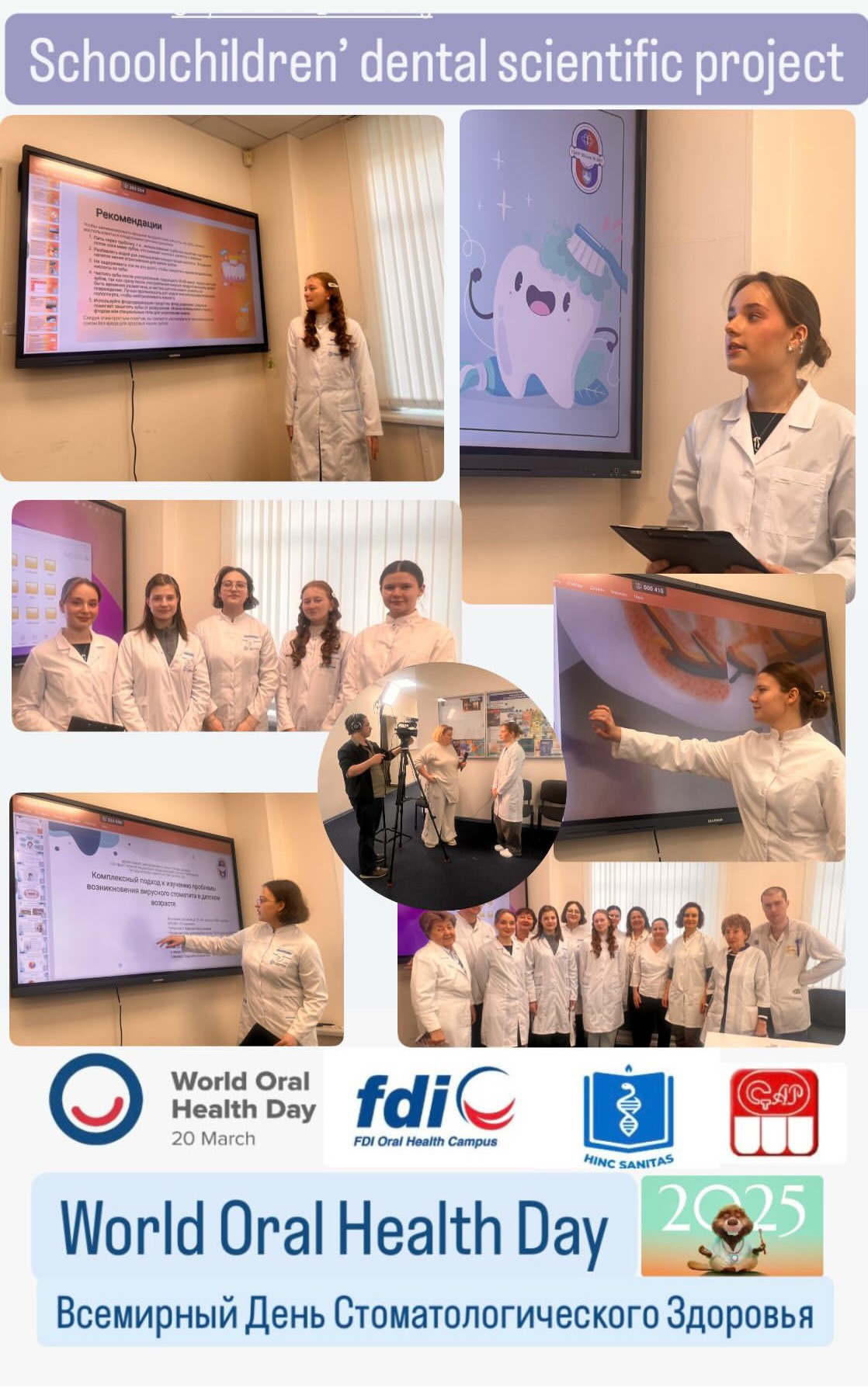In order to raise awareness of the importance of the oral health, a different level events will be organized by the Universities and the RDA: All-Russia dental conference will be held on 4-6th of March Hands-on courses Students' competition in patients brochure creation Schoolchildren oral health research project: presentation at the University Oral health lessons in kindergartens, schools, public, private and university clinics carried out by dental students, dentists and dental hygienists