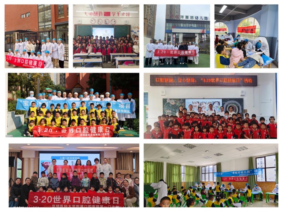 The Affiliated Stomatological Hospital of Kunming Medical University, China actively responded to the call from the F.D.I World Dental Federation and Chinese Stomatological Association for the World Oral Health Day campaign. On this day, we conducted oral health promotion activities alongside several key projects, including The National Children Comprehensive Oral Diseases Intervention Project, The Western Region Disabled Children Oral Disease Prevention Project, The Zero Cavity Kindergarten Project, The Adolescent Oral Disease and Mental Health Survey, and The Targeted Assistance and Support project. These initiatives were led by the Department of Preventive Dentistry and co-organized by eight clinical departments and six outpatient departments from our hospital. A total of 147 participants, including 25 experts, dental nurses, and students, took part in the event. We organized 17 oral health promotion activities, held either onsite or online, which included five free consultation services, eleven health education sessions, and one live broadcast program. Additionally, outreach services were provided to one community, one enterprise, one welfare home, and night schools in the border areas of Yunnan Province. The campaign benefited over 20,000 people across different age groups, providing free medical treatment and fluoride applications for more than 1,000 individuals, and distribution of thousands of oral health education materials.