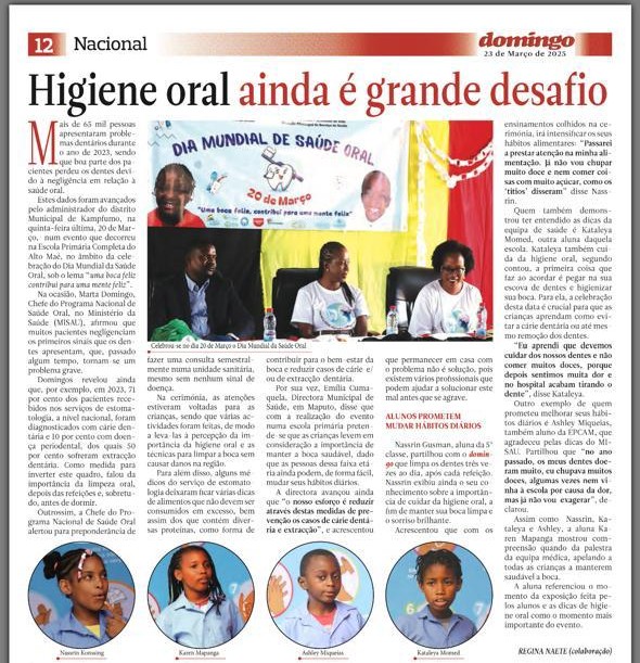 Todos as pessoas merecem acesso a cuidados de saúde oral de qualidade e ao conhecimento necessário para manter uma boca saudável. É por isso que, todos os anos, em todo mundo e em Moçambique comemora-se a 20 de março o Dia Mundial de Saúde Oral.