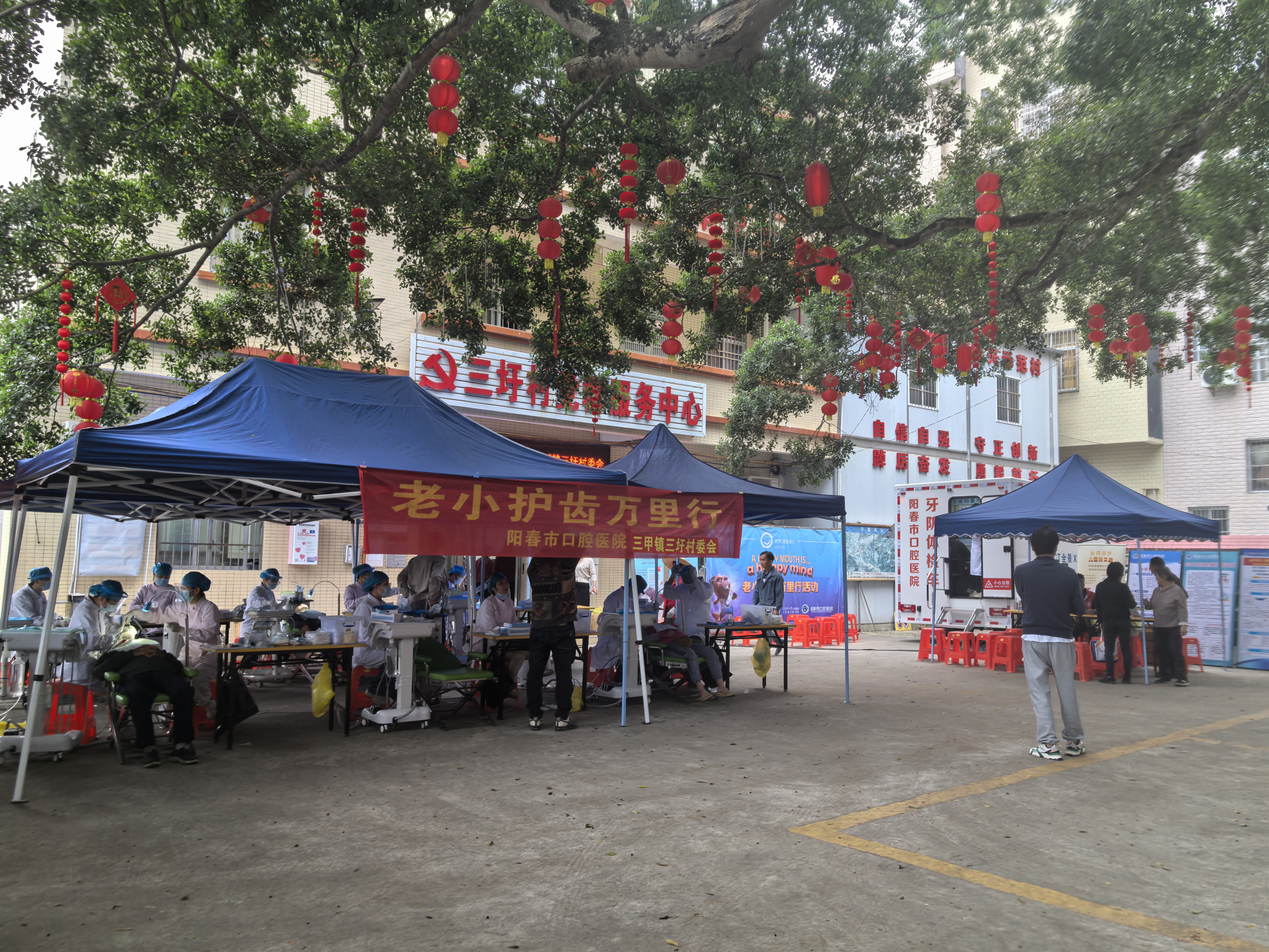 On the occasion of the approaching World Oral Health Day (March 20th), on February 21st, the medical team of Yangchun Stomatological Hospital, composed of 12 medical staff and 6 volunteers, entered Sanxu Village Committee in Sanjia Town to carry out the "Oral Health Journey for the Elderly and the Young" free clinic activity. Through empowering with cutting - edge technology and precise science popularization, they provided oral health services to 56 villagers.